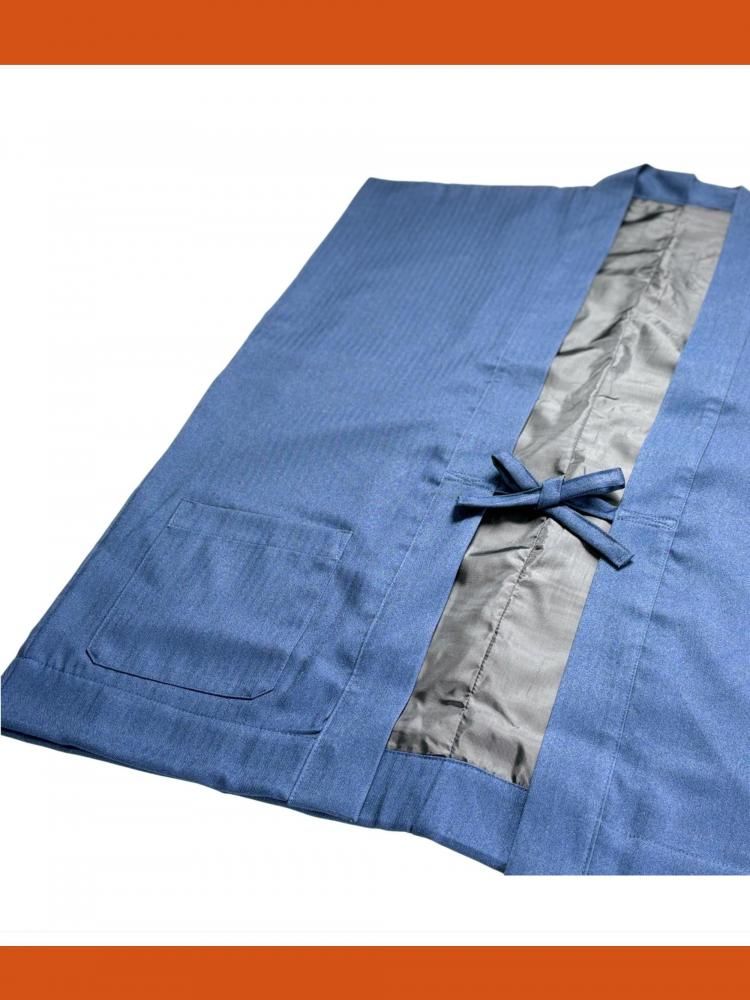 全国の旅館やホテルなどで使われている業務用の杉綾織無地生地のポリエステル100%の羽織です。