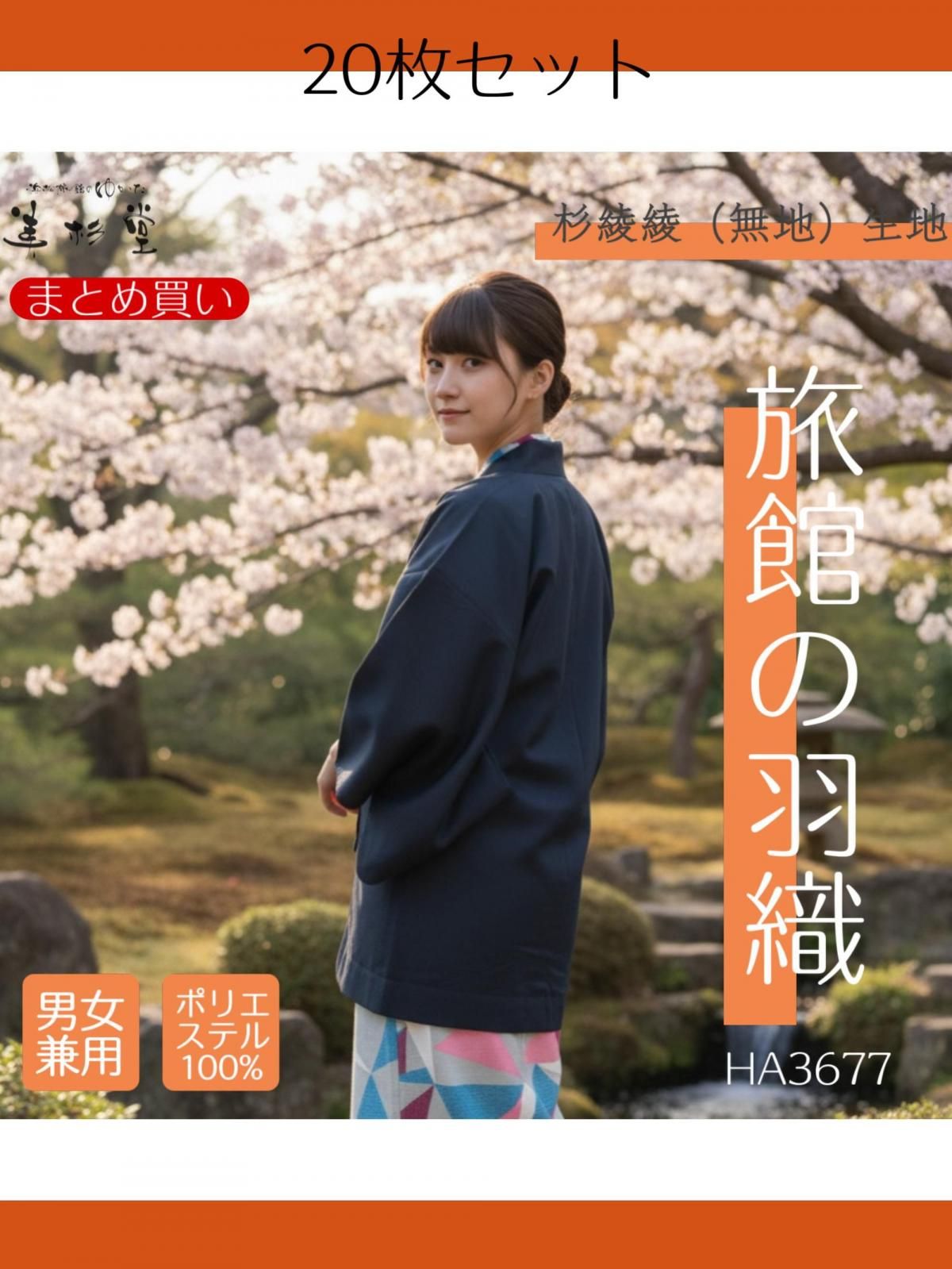 全国の旅館やホテルなどで使われている業務用の杉綾織無地生地のポリエステル100%の羽織です。